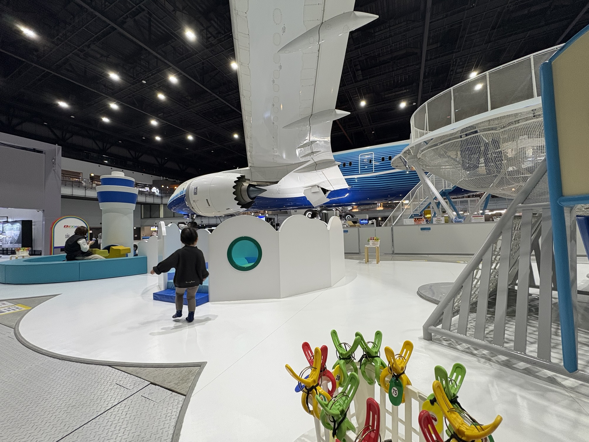 実寸大のジャンボジェットを眺めながら遊ぶことができる。