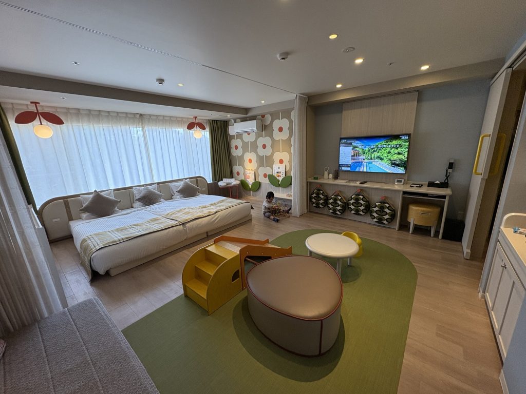 部屋はキレイで子どもは大はしゃぎ。洗面台が大人用と子ども用の2つあるのに感動。3歳児ずっと手洗ってたよ。夜の寝かしつけは誘惑がいっぱいあるので大変だった。