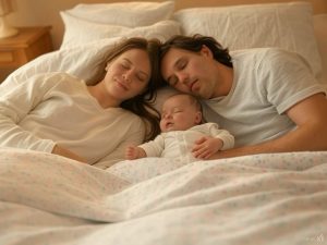 暫くは上の子を挟んで3人で寝ていましたが、上の子が歩くようになるとベッドの上でジャンプをするように。