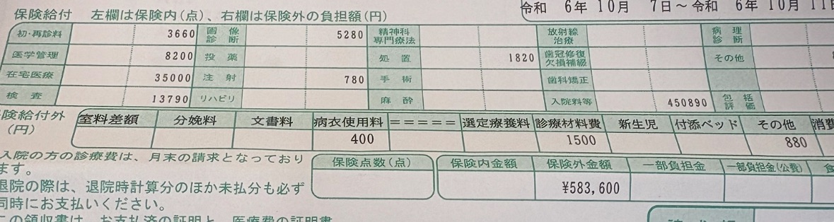 まぁ経過良好で何事もなく4日で退院できたんだけど、出生直後なので健康保険証もなく自費診療で精算すると58万円に。
