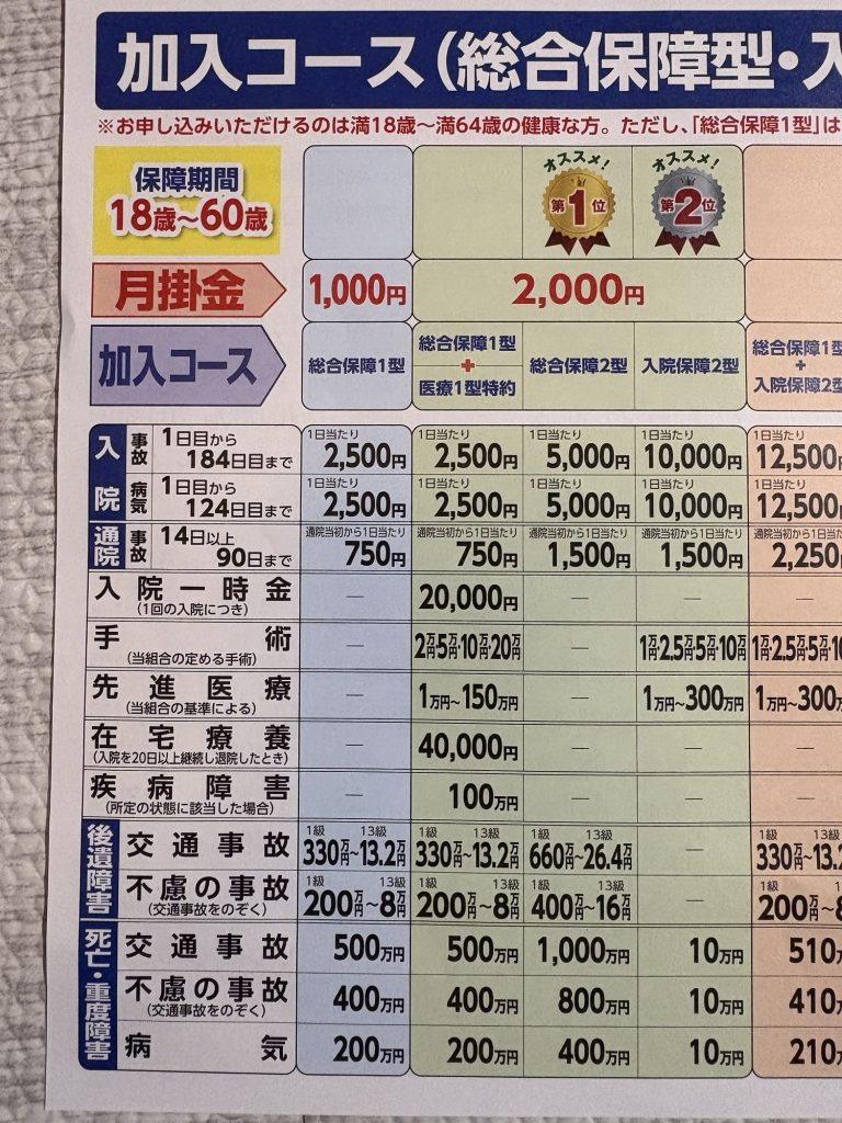掛け金2,000円と負担も少なく、最低限の保証が詰め込まれてる。これでいいんだよ感満載である。