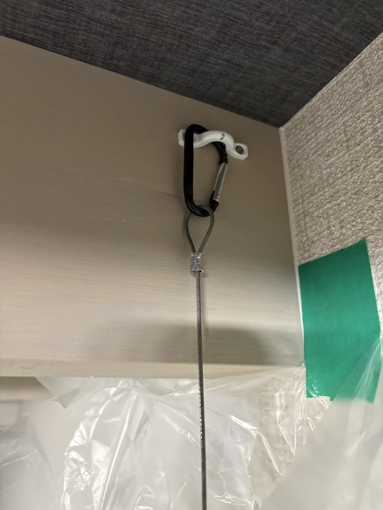 スクリーンとワイヤーを左右それぞれ引っ掛けて完了。