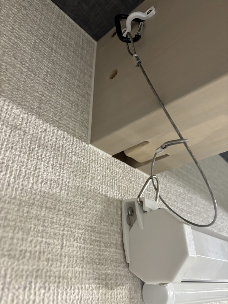 引っ掛け用のネジは締め付けができない位置にあるので地震対策にもワイヤーはしっかりつけておきましょう。